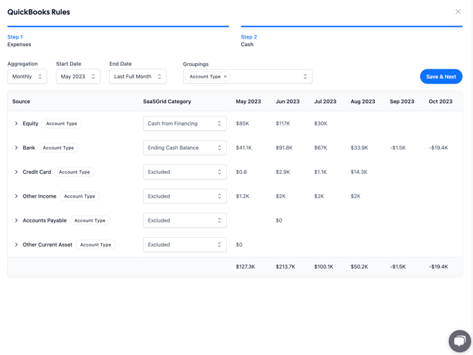 Now that the data is connected to SaaSGrid, you'll need to configure rules to ensure that SaaSGrid is classifying your accounting data correctly. These rules can be updated at any time under the Data Source Detail Page.
