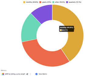 Groupings break down Metrics by an Attribute, providing an additional layer of information to Charts. With Groupings you can easily perform analysis like ARR by region, open invoices by billing frequency, or bookings by sales rep.